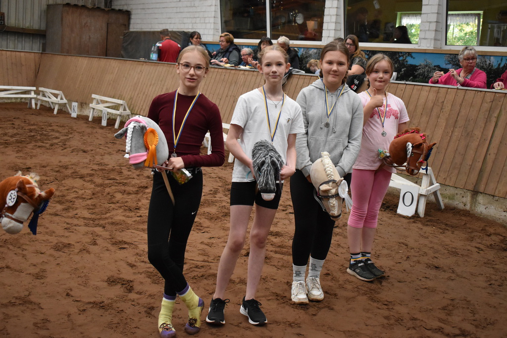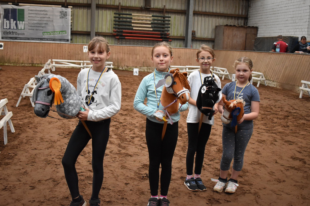 Wie bei Reitturnieren wurden auch hier Prüfungen in der Dressur und auch im Springen durchgeführt. Bei Pas de deux, Flag-Race, Stilspringen und ebenfalls beim Zeitspringen waren alle Kinder eifrig bei der Sache.